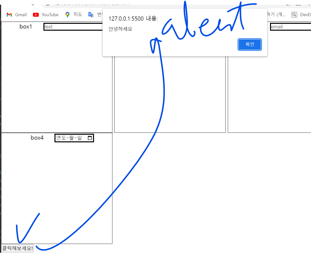 🎀개선한점 : <button type = "button" onclick="alert('안녕하세요')">클릭해보세요!</button>🎀