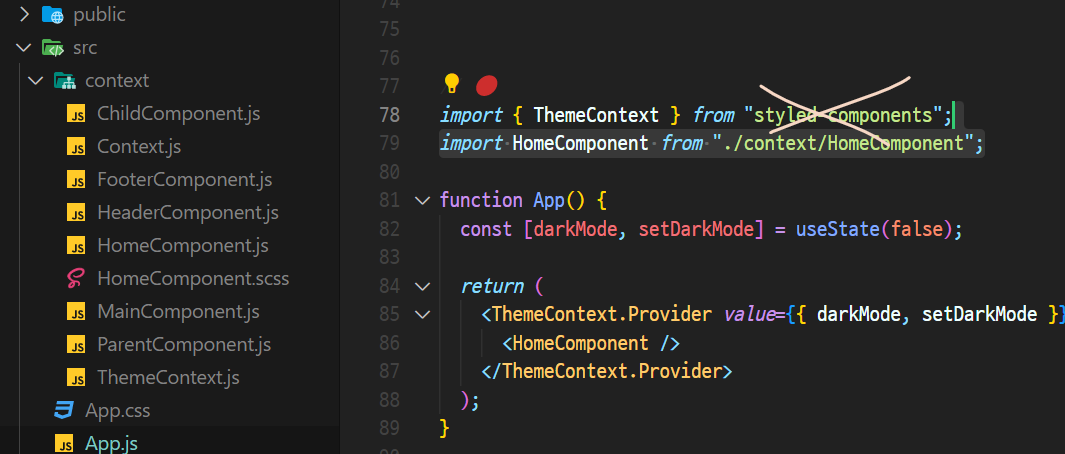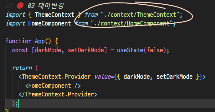 import {ThemeContext} 작성하면 기본적으로 from "styled componetns" 가 자동 작성이 되는데,
