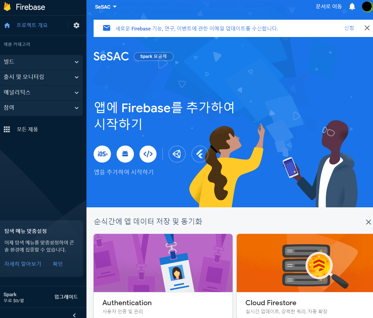 • 인증(Authentication), 데이터베이스(Firestore), 분석 (Analytics) 등의 기능 제공합니다
