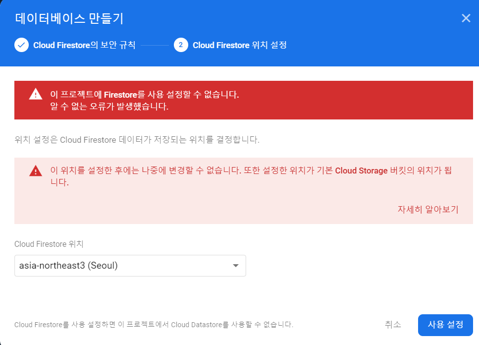 위치 설정은 Cloud Firestore 데이터가 저장되는 위치를 결정합니다.