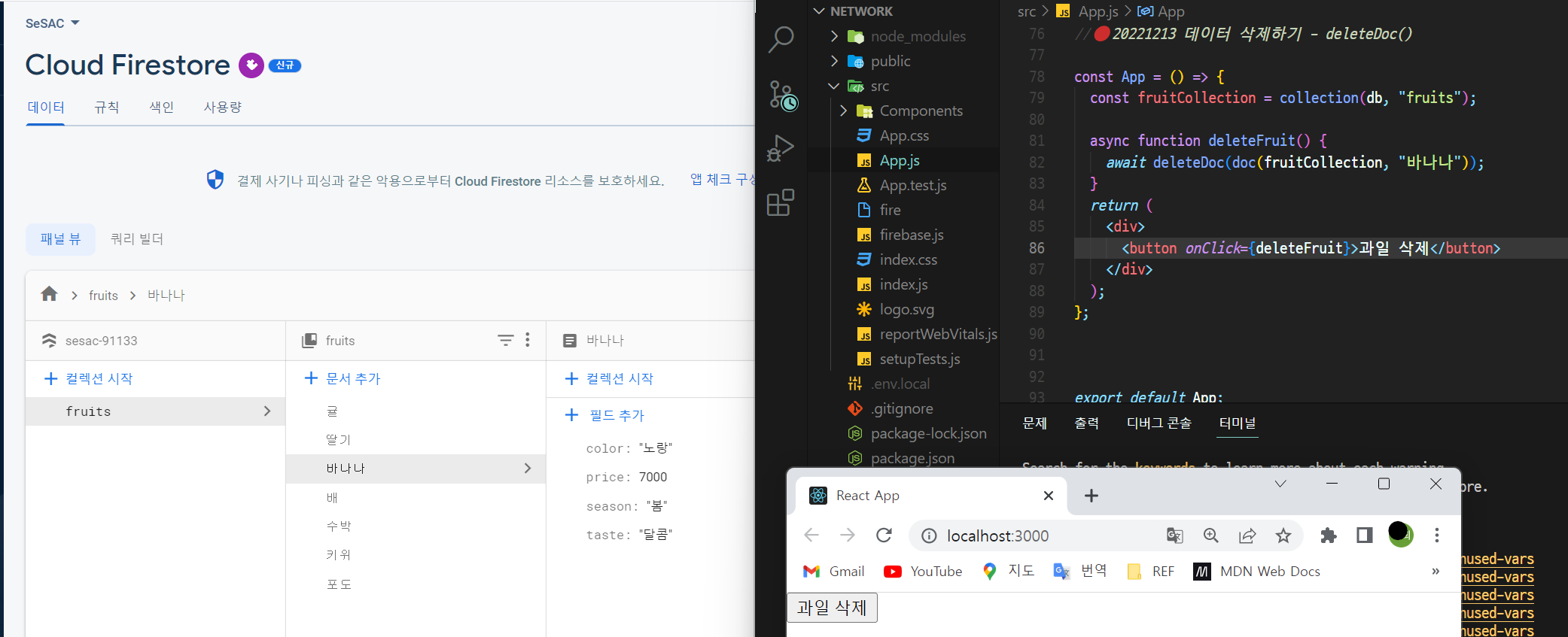 App.js:15 Uncaught (in promise) FirebaseError: Missing or insufficient permissions. 코딩의 문제가 아니라 해결! ㅂㅁ님 감사합니다😌