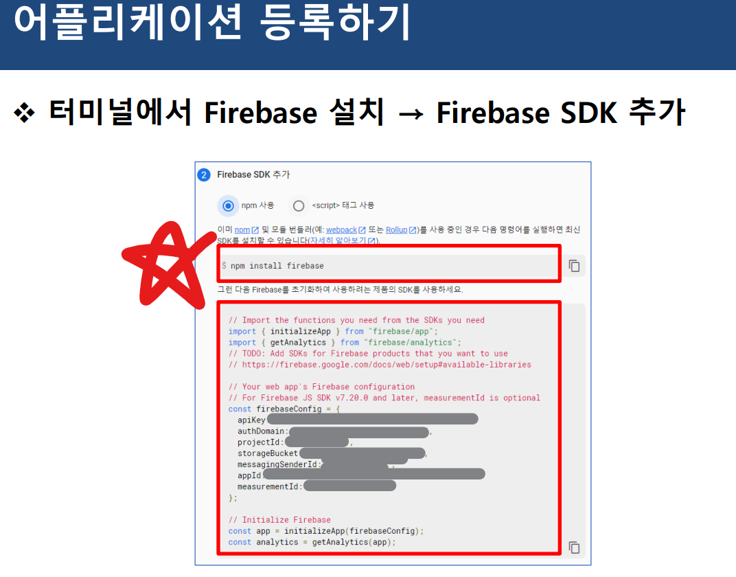 명령어 npm install firebase 를 사용하여 firebase를 설치하도록 한다.