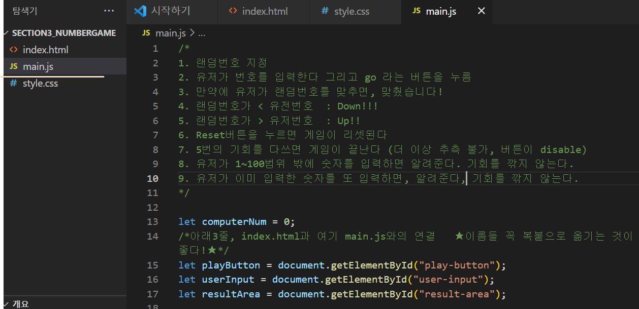 나의 첫번째 프로젝트 : 숫자맞추기 게임 만들기