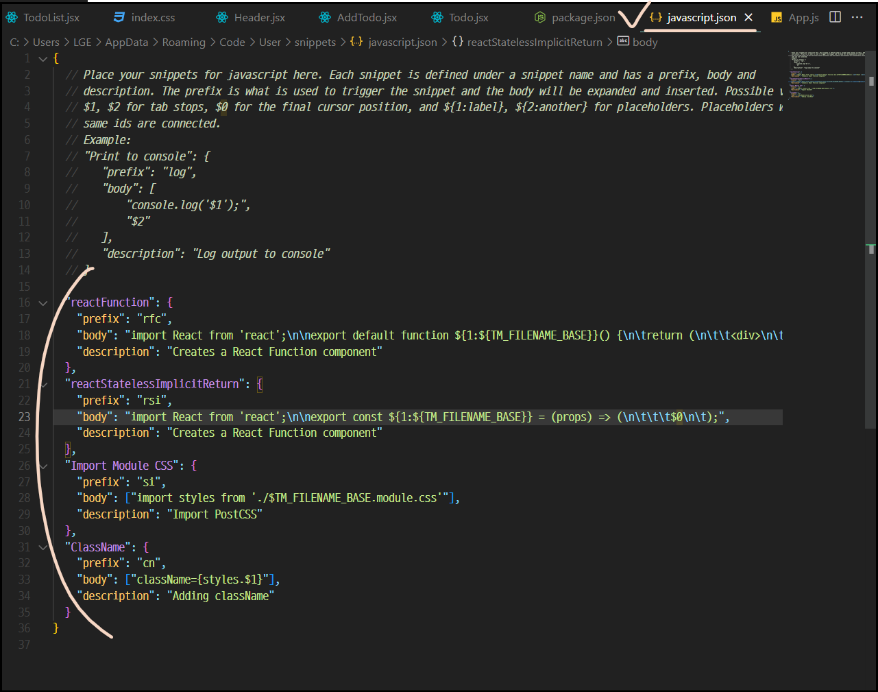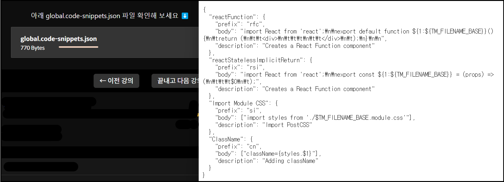 해당 부분을 넣어주면 된다. 스니펫을 설치하지 않아도 단축어를 사용 할 수 있다.
