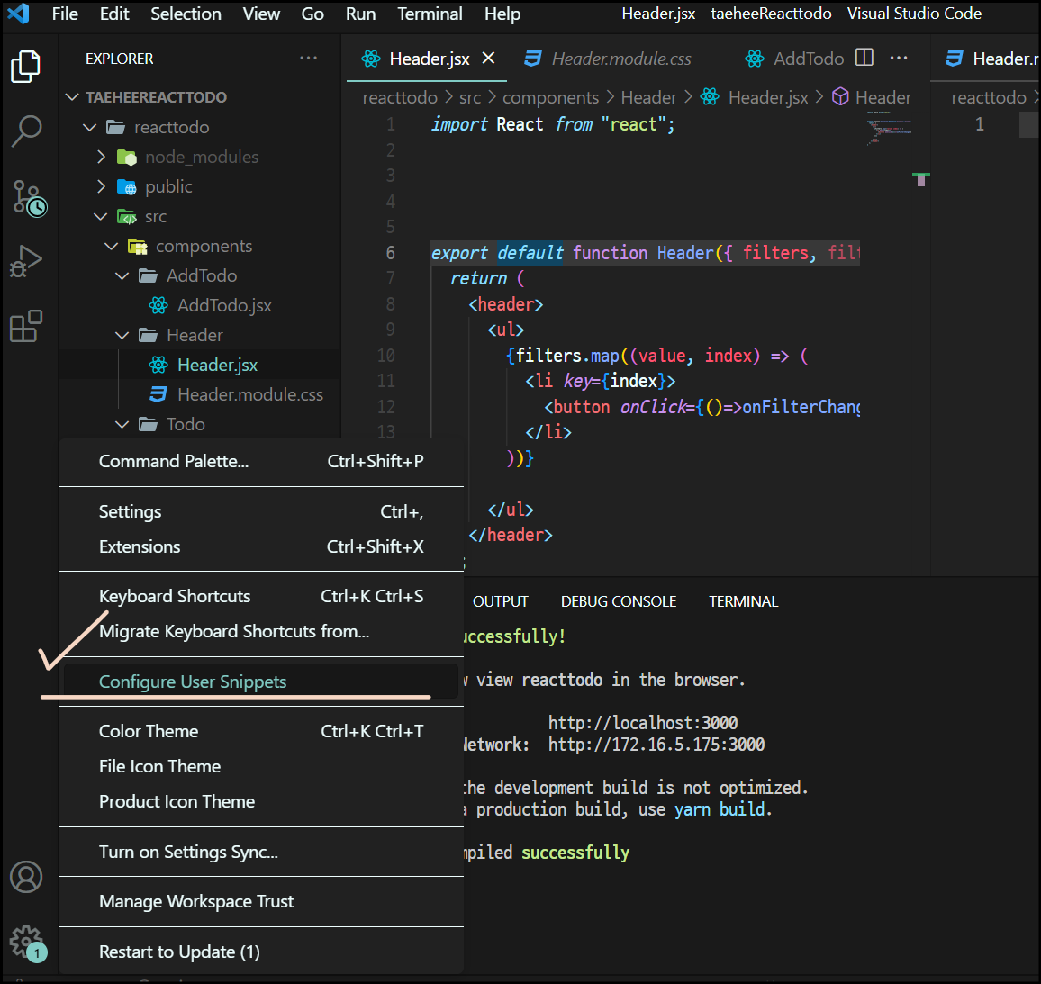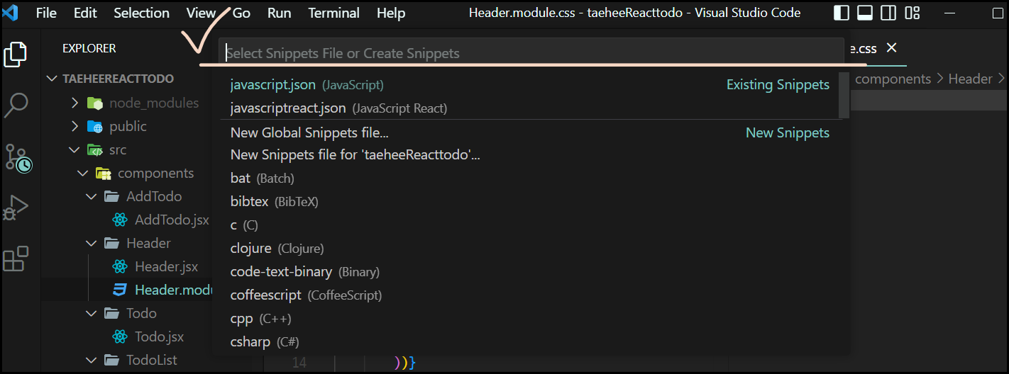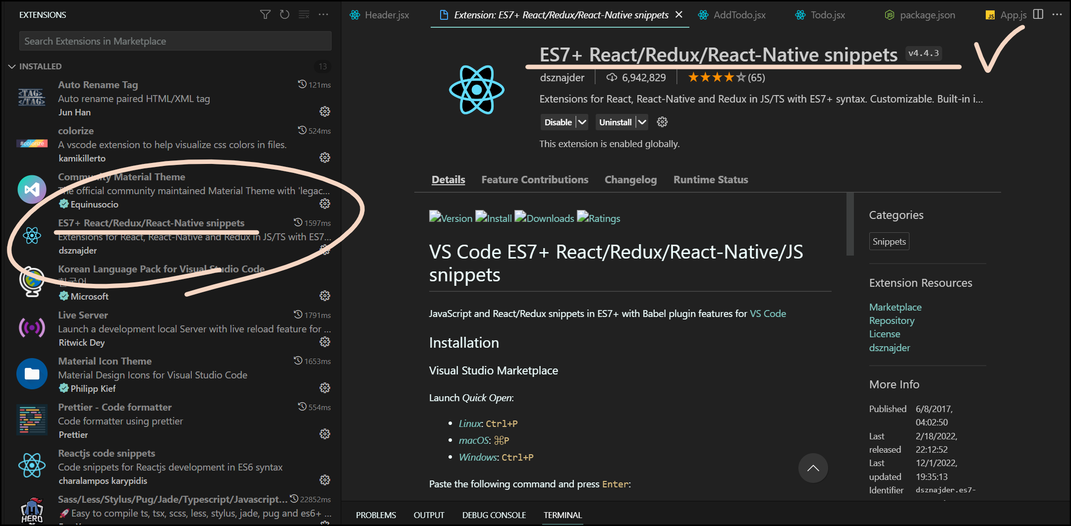 ex. <div cn> 이라 입력하면 <div className> 이라고 자동으로 뜨게 되는 것이다.