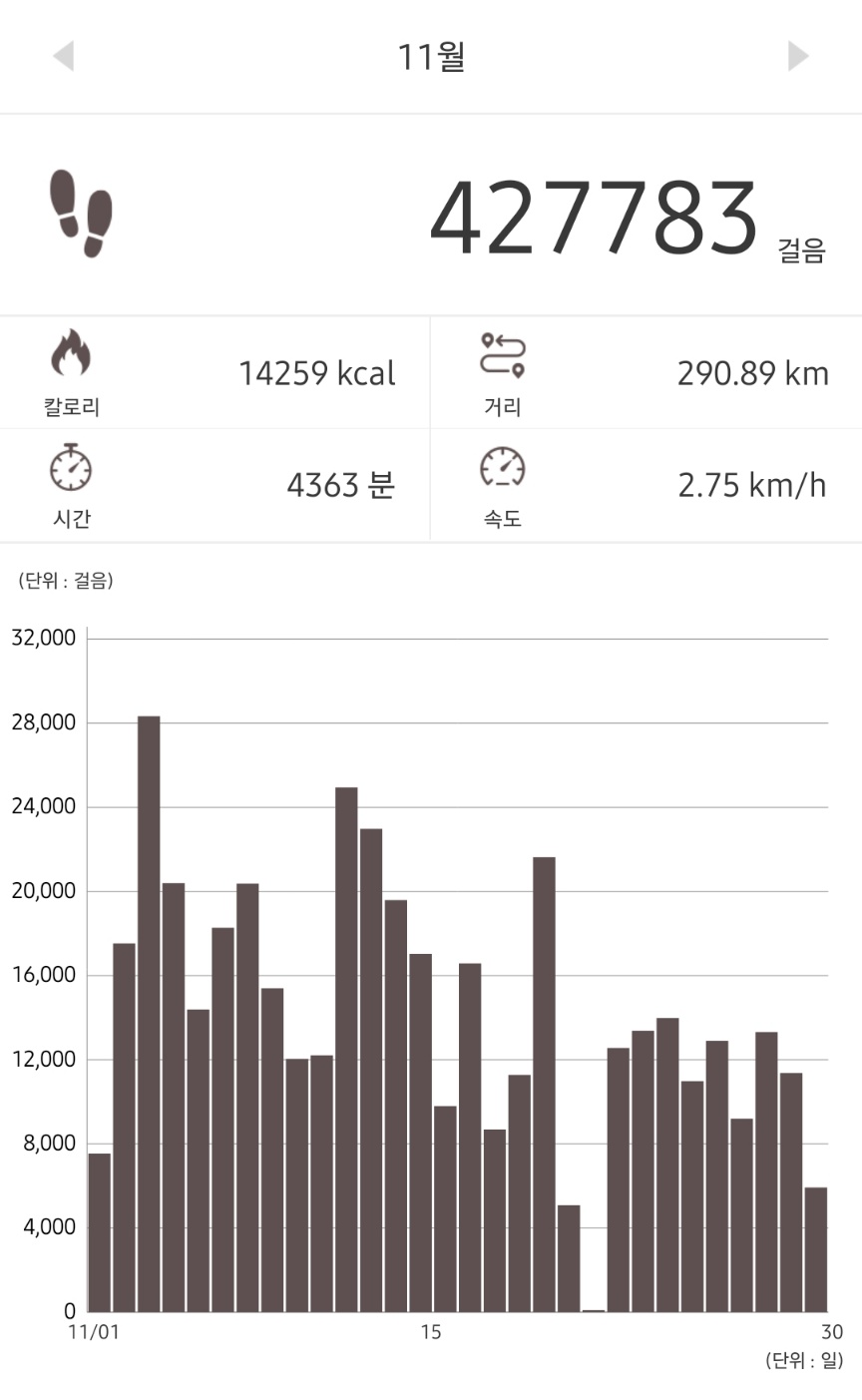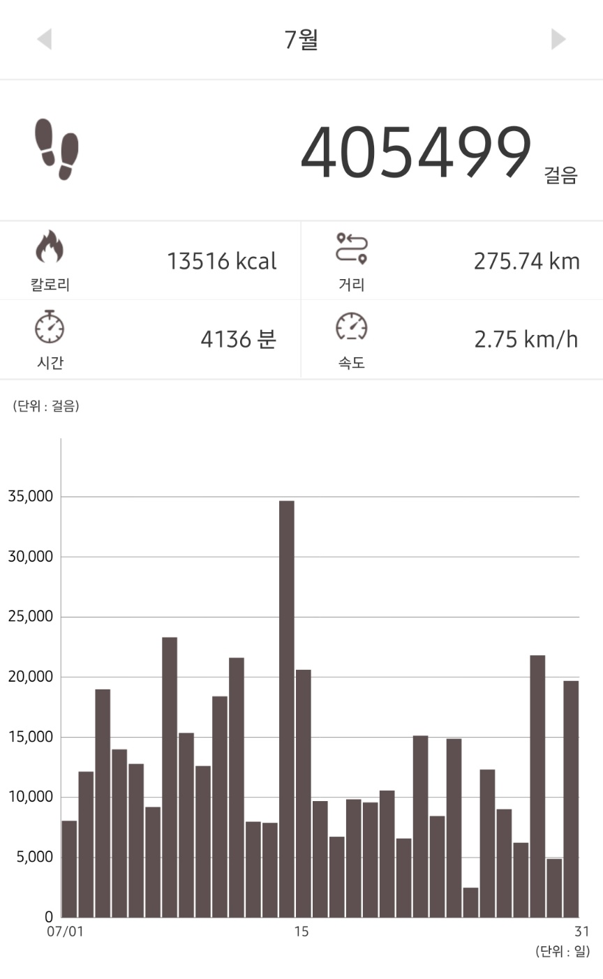 ㅎㅎ 초반에 만걸음 다 채우고 못 눌러서 100원 다 걸어놓고 못 눌렀다고 엄청 아까워하던게 기억난다.