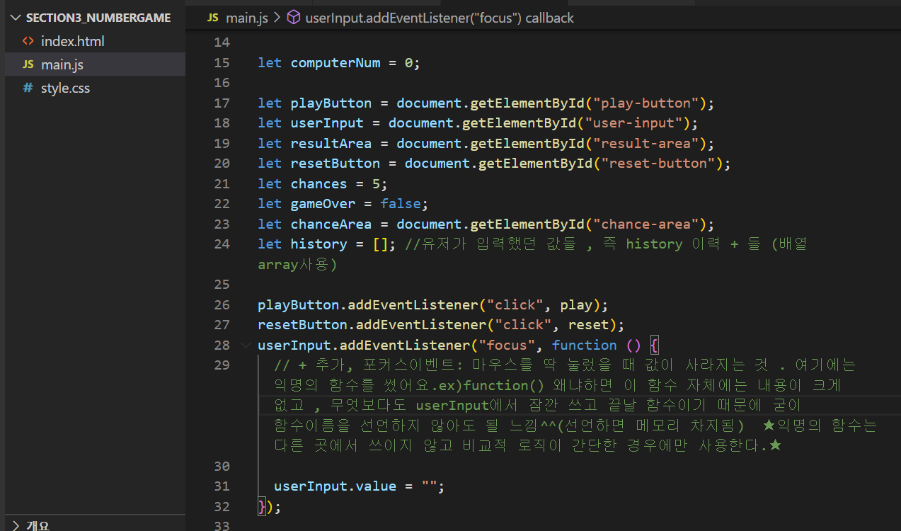 | [필기 21.2. 숫자맞추기 게임2탄 : HTML과 자바스크립트가 소통하는 법 (0) | 2022.11.01 |