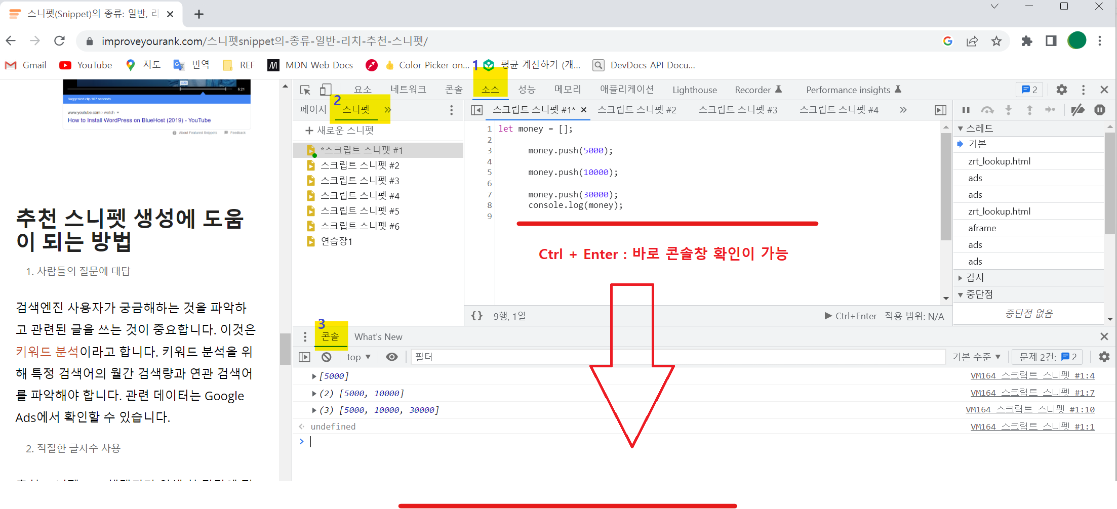 Chrome에서 F12 를 눌러 개발자 환경에 들어가 > 소스 > 스니펫 을 띄어보자.