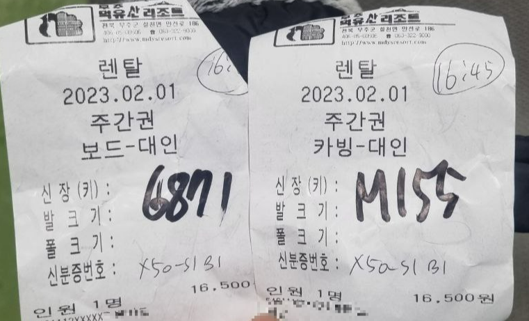무릎+엉덩이 보호대는 빌릴 수는 없고 (3만8천원, 5만원 짜리) 구매할 수 있다고 한다.