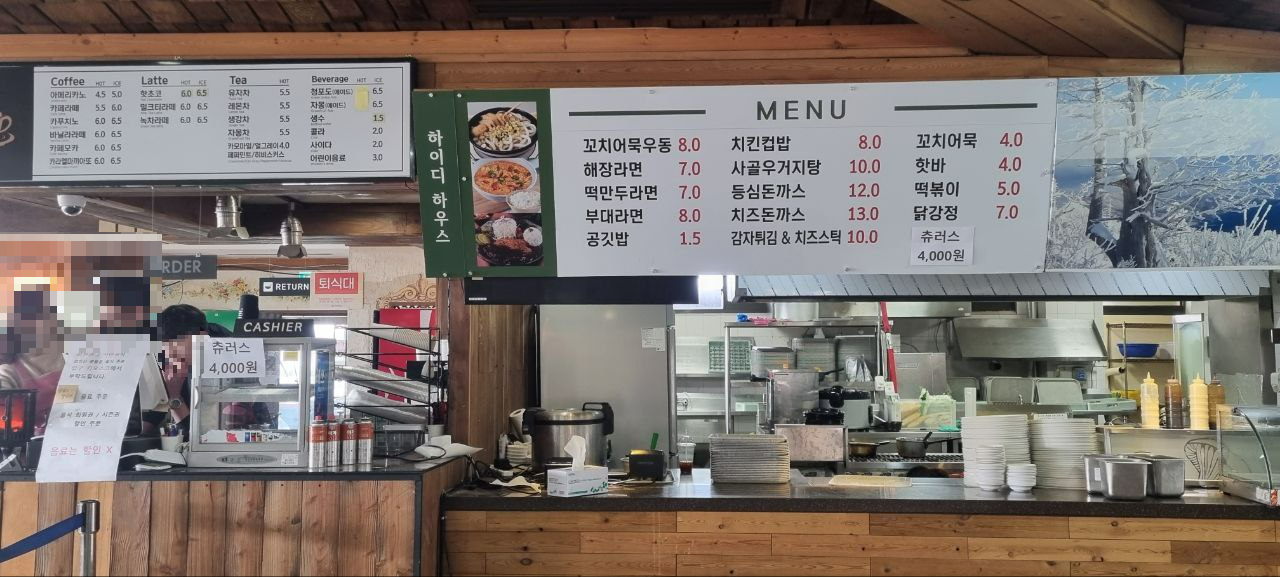 스키를 노동처럼 타다가, 안되겠다 싶어 들어온 하이디 휴게소.
