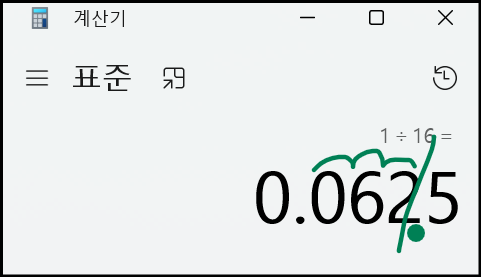 - num1이 1, num2가 16이므로 1 / 16 = 0.0625에 1,000을 곱하면 62.5가 되며, 정수 부분은 62입니다.