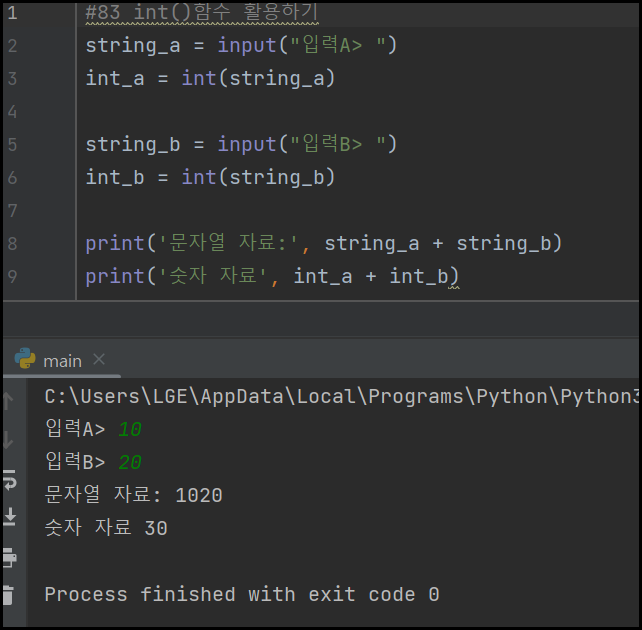 👉 입력받은 문자열을 숫자로 변환해야 숫자 연산에 활용할 수 있다는 메시지이다.