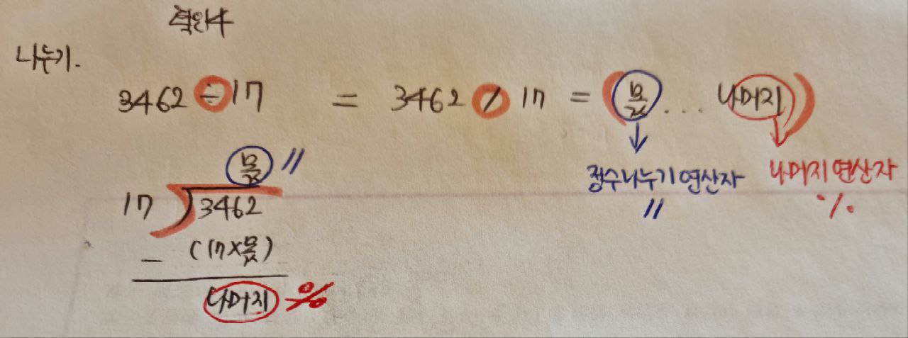 이때 = 기호는 '같다'는 의미가 아닌 우변의 값을 좌변에 '넣겠다','할당하겠다'라는 의미입니다.