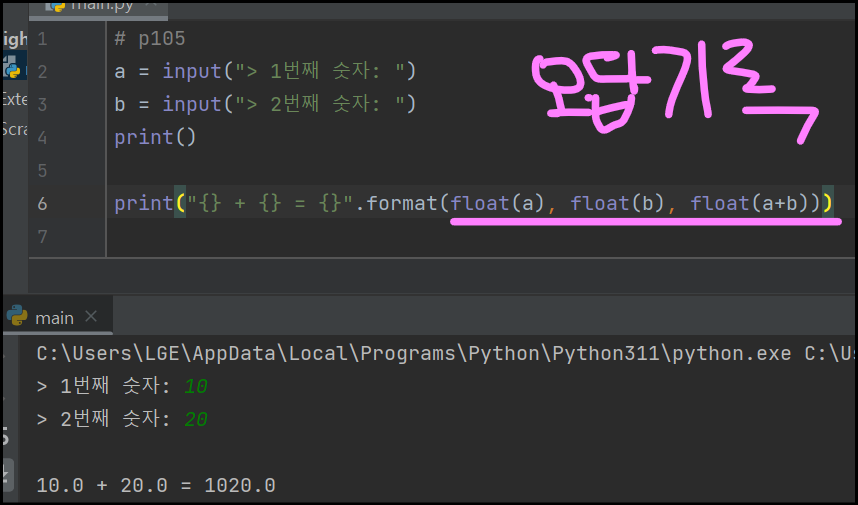 input()함수로 자료를 입력받은 후 입력받은 것과 숫자를 더하는 코드를 작성하려고 하면