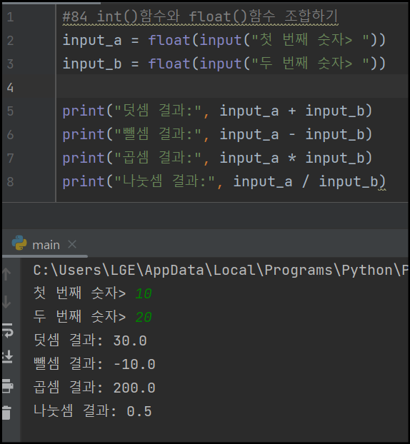⭐ input()함수의 입력 자료형은 항상 문자열이기 때문에 입력받은 문자열을 int()혹은 float()함수를 사용해 숫자로 변환해야 숫자 연산에 활용할 수 있습니다.