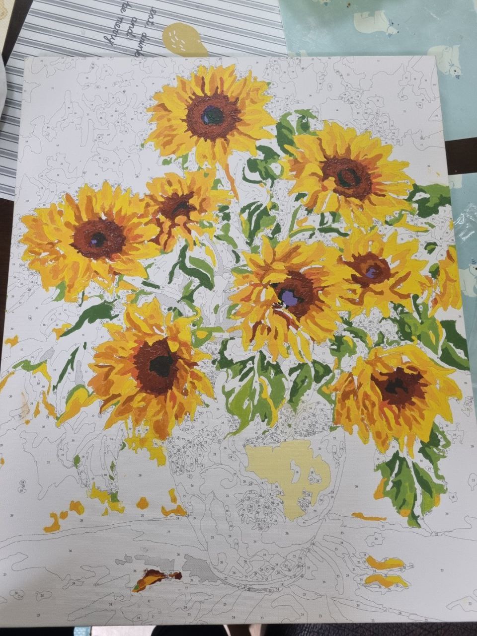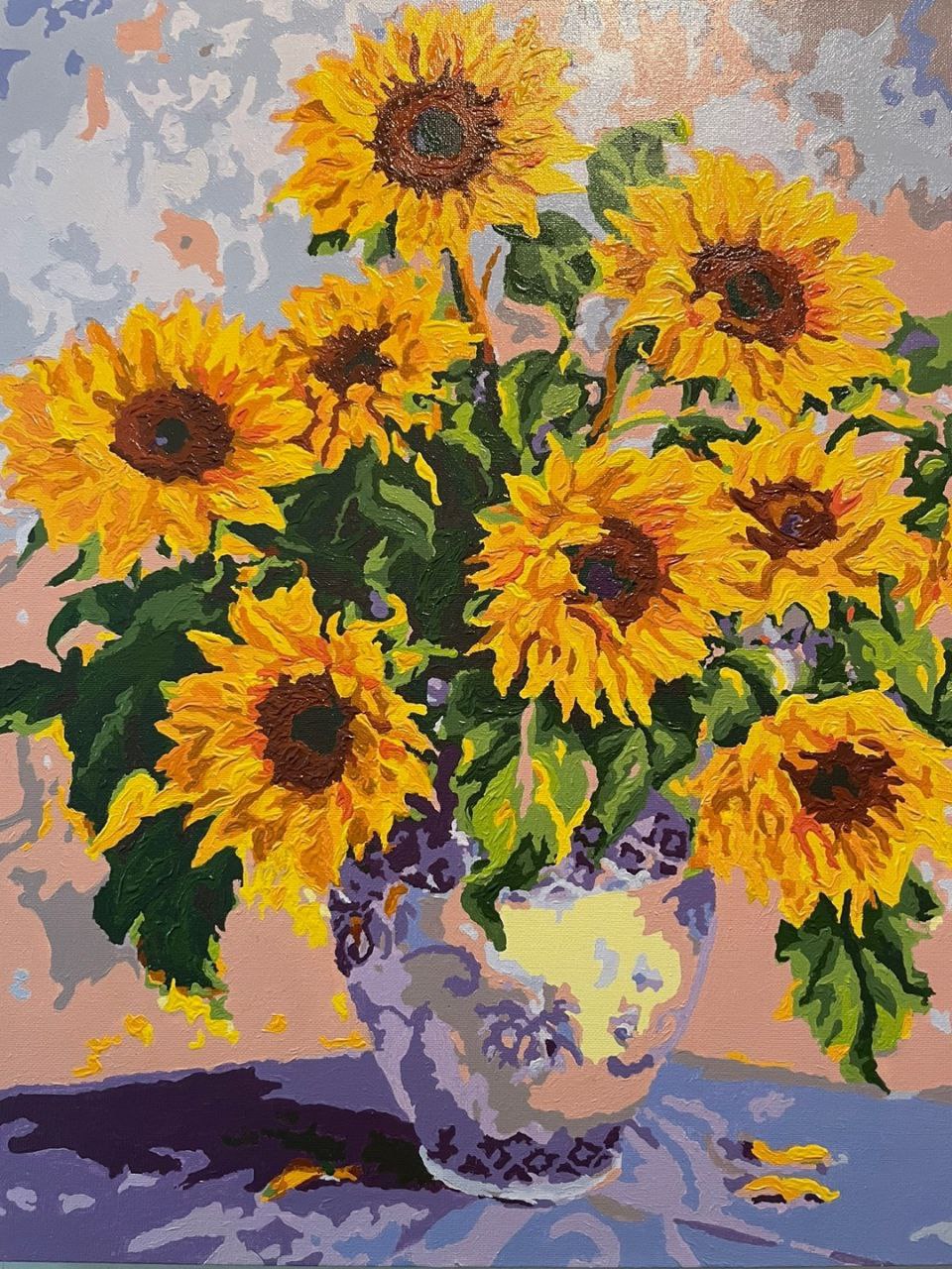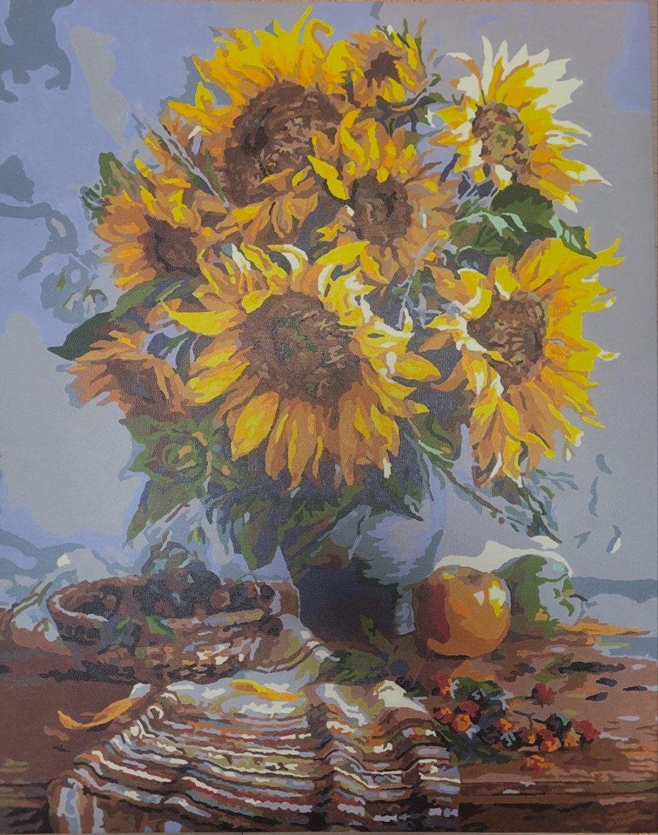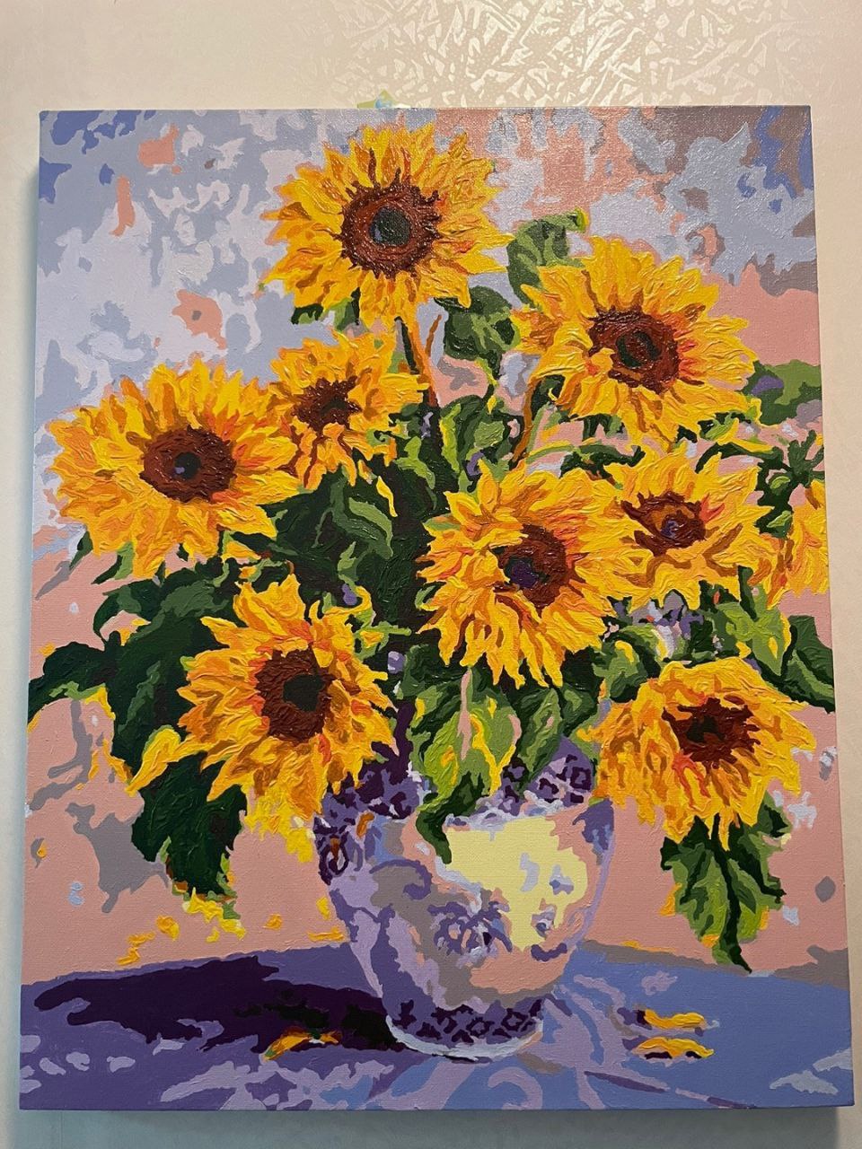 1차로 전체채색 다하고 꽃잎 부분을 좀 더 입체감 있게 표현하고 싶어서 남은 물감들 덧발라서(살릴려고) 👉 다이소 물감 은 색깔이 영 이었다..... 음 내가 색을 잘 못섞는 건가. 다른 아크릴 물감은 가격대가 있어서 이번판엔 도전안했음.