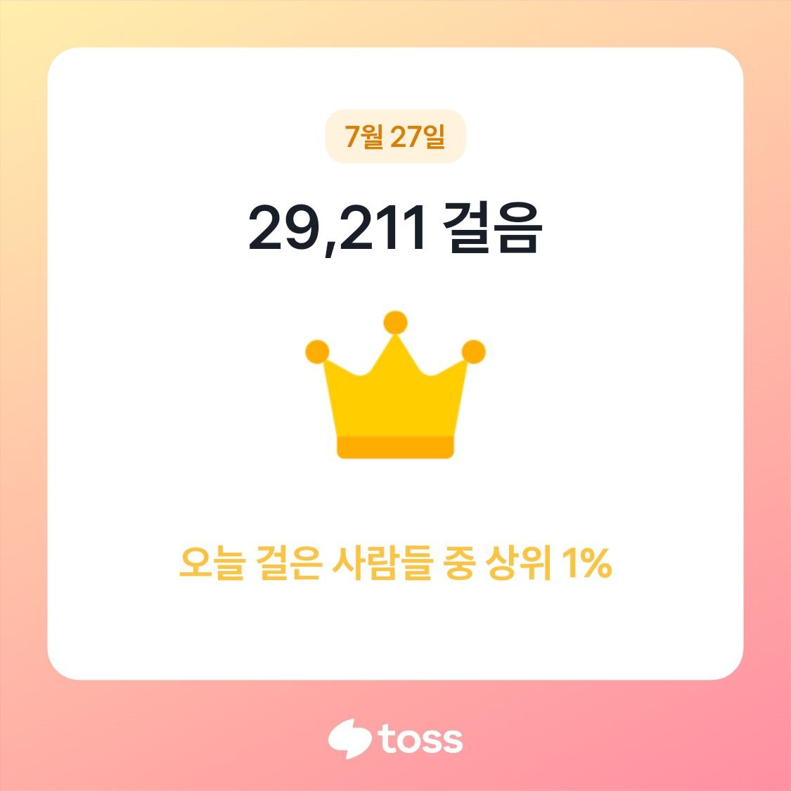 7/27 : 이번달 최고기록 : 29,211步 3만까비...
