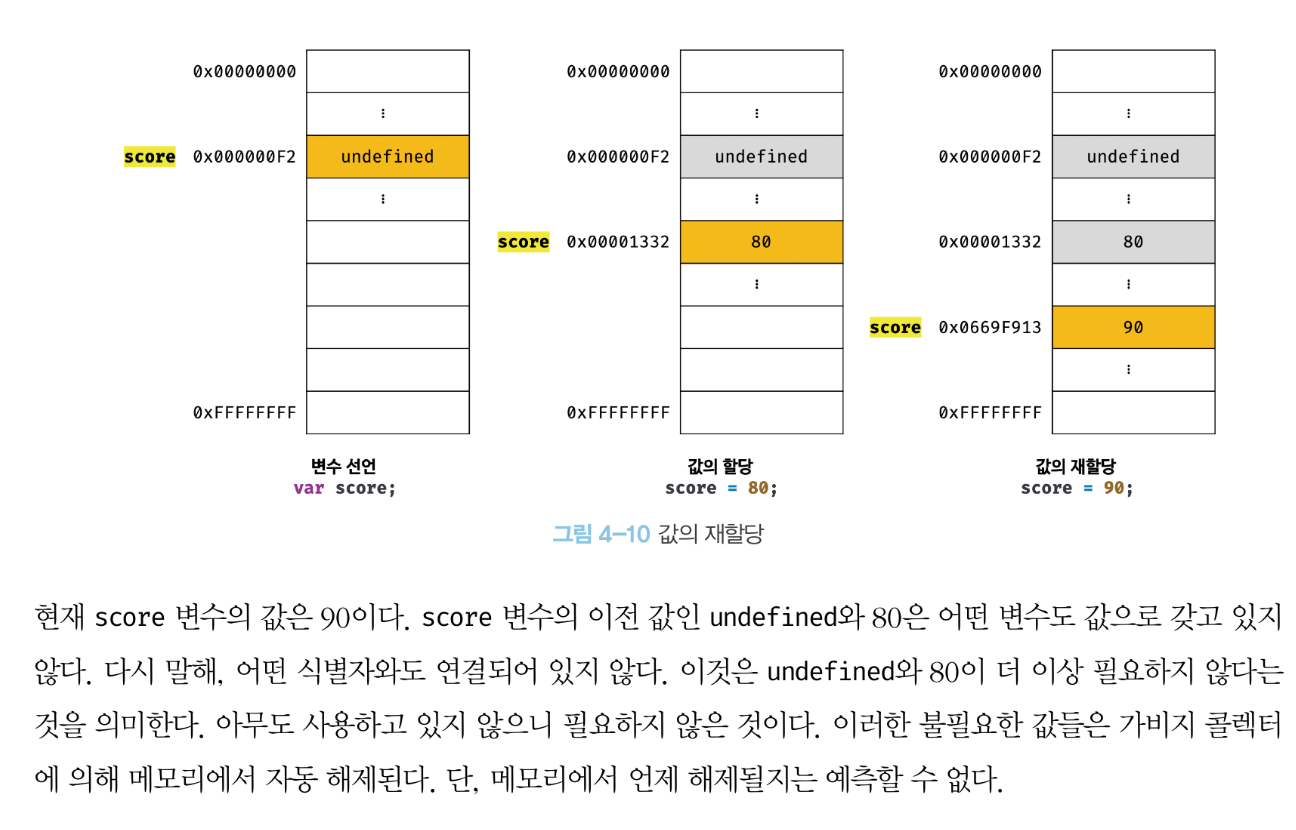 + 재할당은 변수에 저장된 값을 다른 값으로 '변경'한다 => 그래서 '변수'라고 하는 것이다.