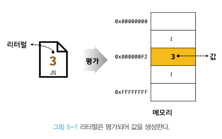 5.1 값value은 식(표현식expression)이 평가evaluate되어 생성된 결과를 말한다.