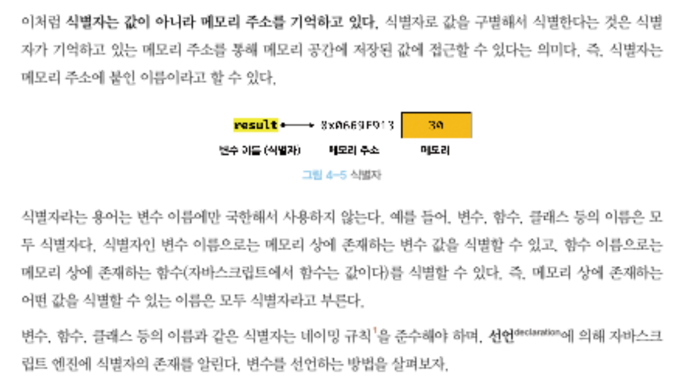 ㄴ ㄴ 마치, '사람'을 '이름'으로 구별해서 식별하는 것처럼, '값'도 '식별자'로 구별해서 식별할 수 있다.