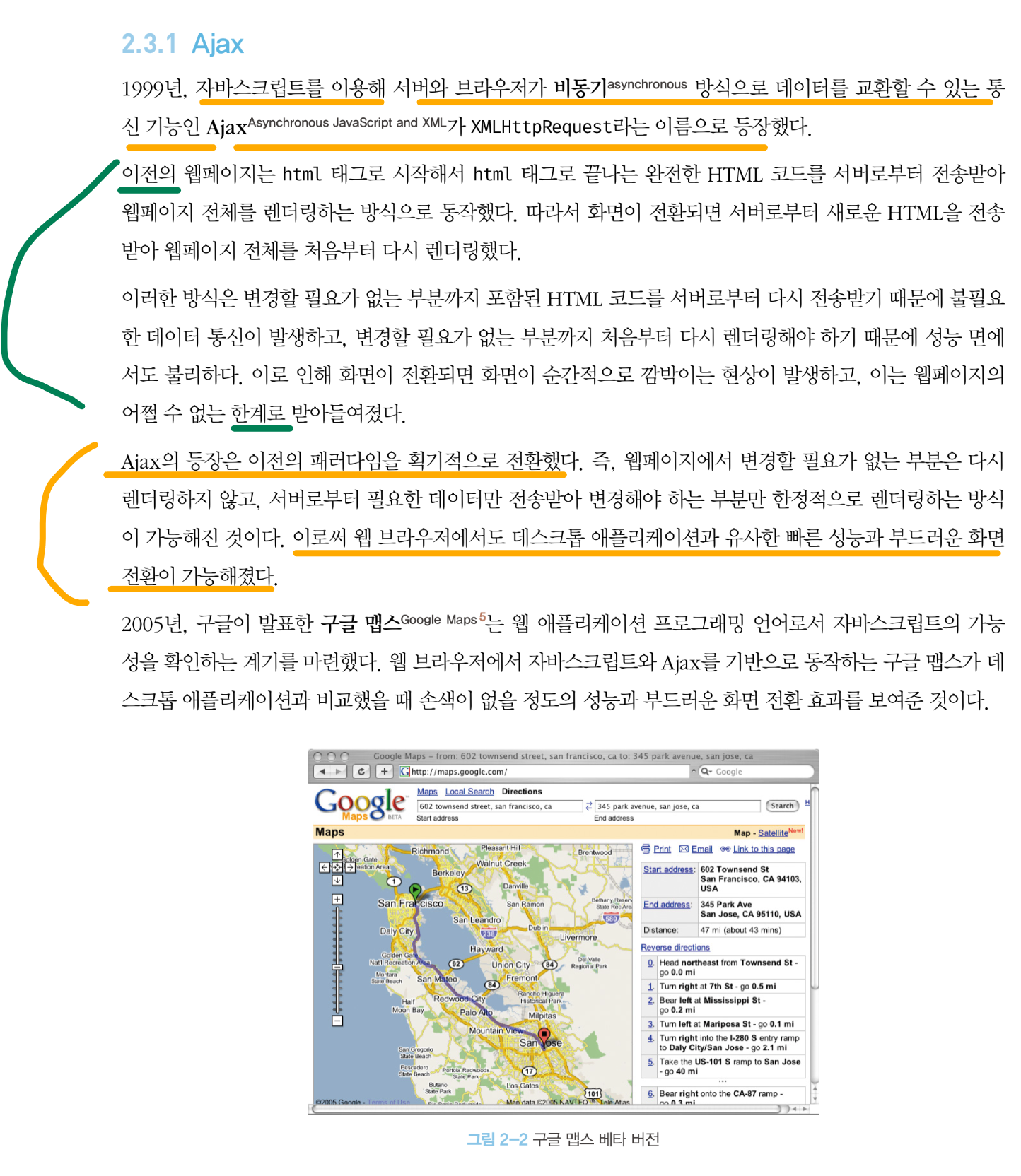 기존의 (순차적인) 동기방식을 "아작내고" 작업들이 독립적을 실행되어(비동기적으로), 실행 속도를 획기적으로 줄인 "아작스, 에이작스 Ajax"