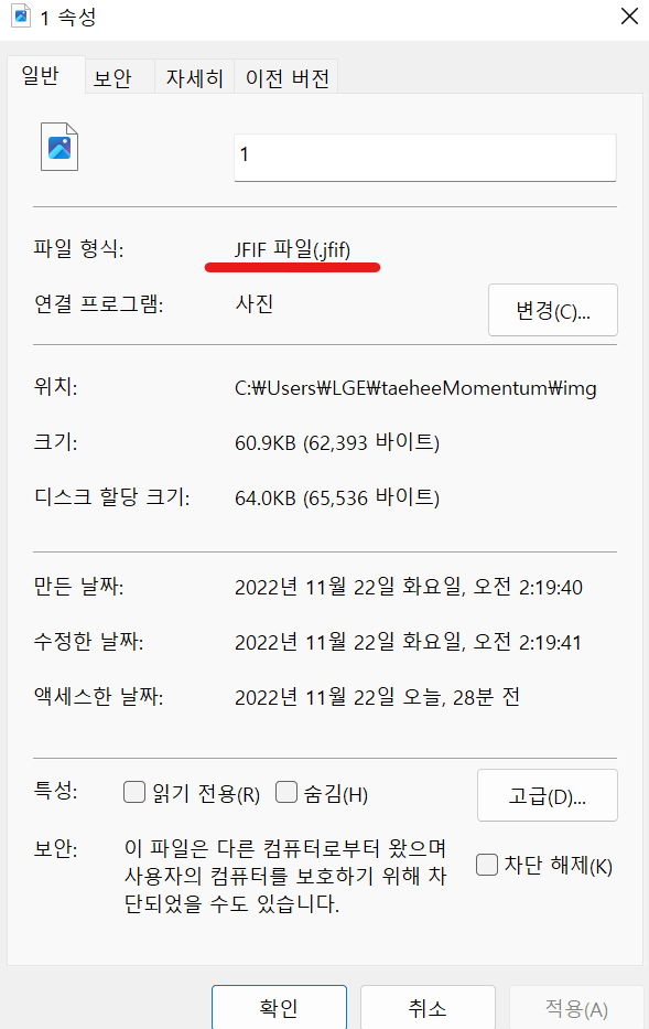 일단 이 증상은 구글 크롬 브라우저에서만 발생하며 인터넷 익스플로러나 엣지 브라우저에서는 .jpg파일로 정상 저장 된다고 한다.