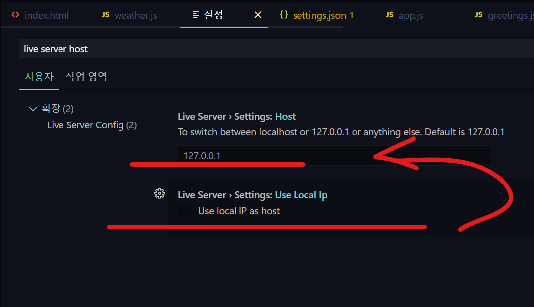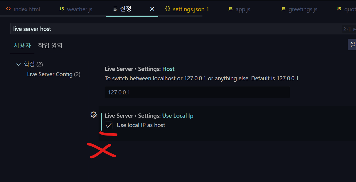 Use local IP as host 에 체크가 되어있는데 이것때문에